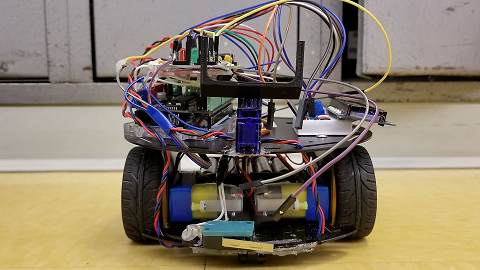 An autonomous robot designed to perform tasks including self-driving, following a path, and writing words